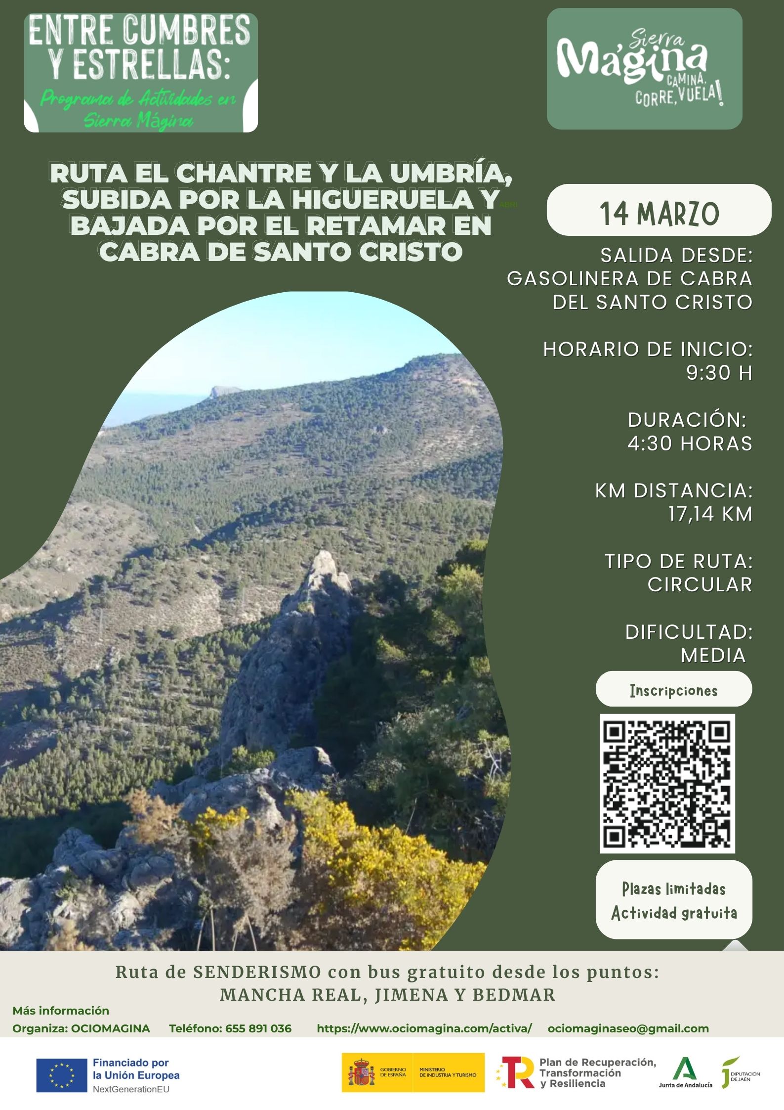 Actividad incluida en el Plan de Sostenibilidad Turística en Destino “Sierra Mágina, aventura y deporte de bajo impacto en la alta montaña de Andalucía” Plan de Recuperación, Transformación y Resiliencia financiado por la Unión Europea – NextGenerationEU”