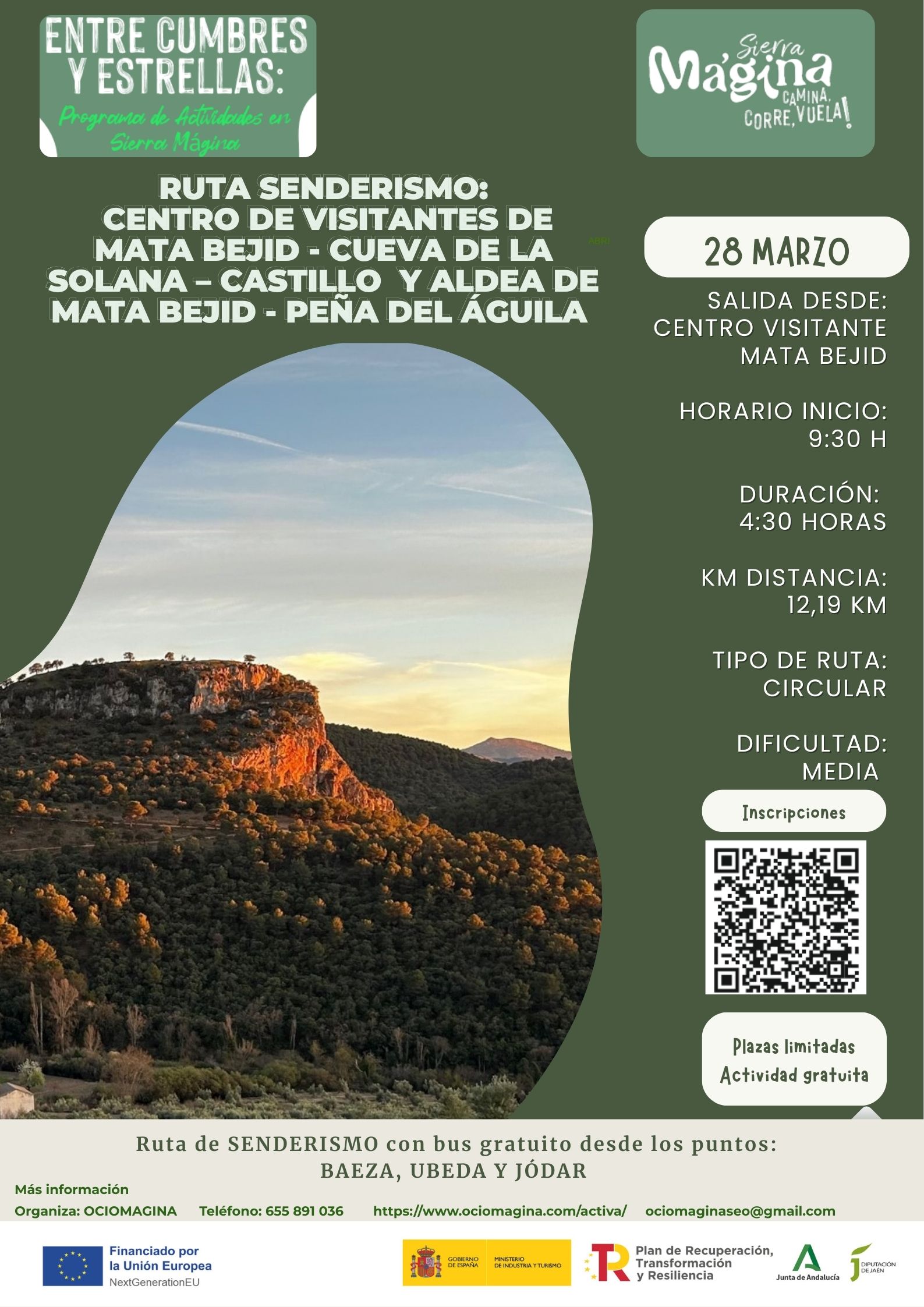 Actividad incluida en el Plan de Sostenibilidad Turística en Destino “Sierra Mágina, aventura y deporte de bajo impacto en la alta montaña de Andalucía” Plan de Recuperación, Transformación y Resiliencia financiado por la Unión Europea – NextGenerationEU”